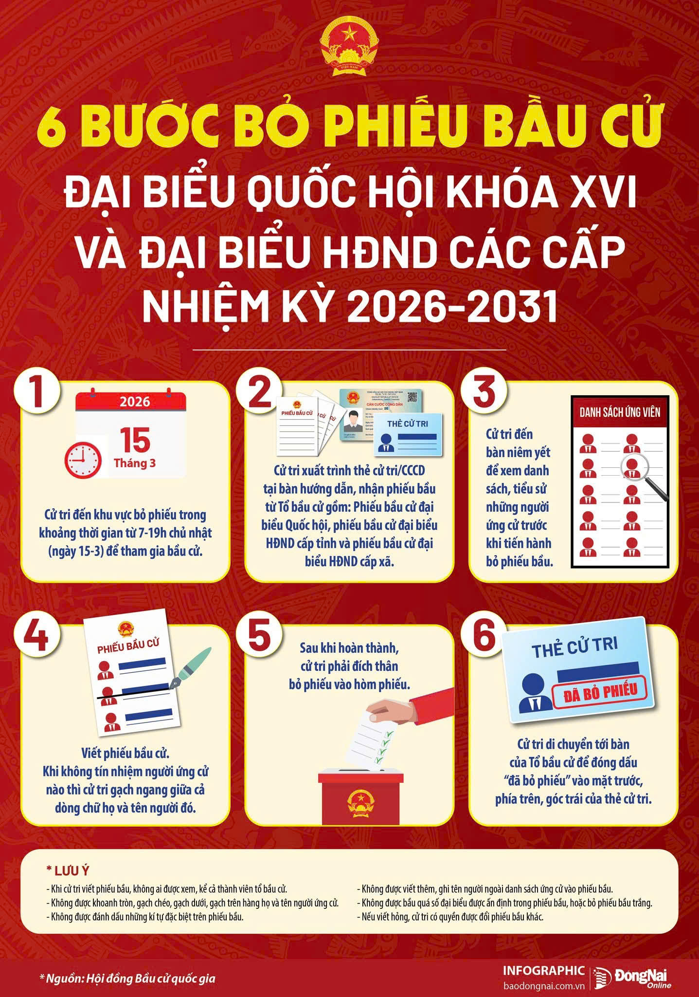 𝟔 𝐛𝐮̛𝐨̛́𝐜 𝐛𝐨̉ 𝐩𝐡𝐢𝐞̂́𝐮 𝐜𝐡𝐮𝐚̂̉𝐧: Từ khi vào cổng đến lúc đóng dấu thẻ cử tri.