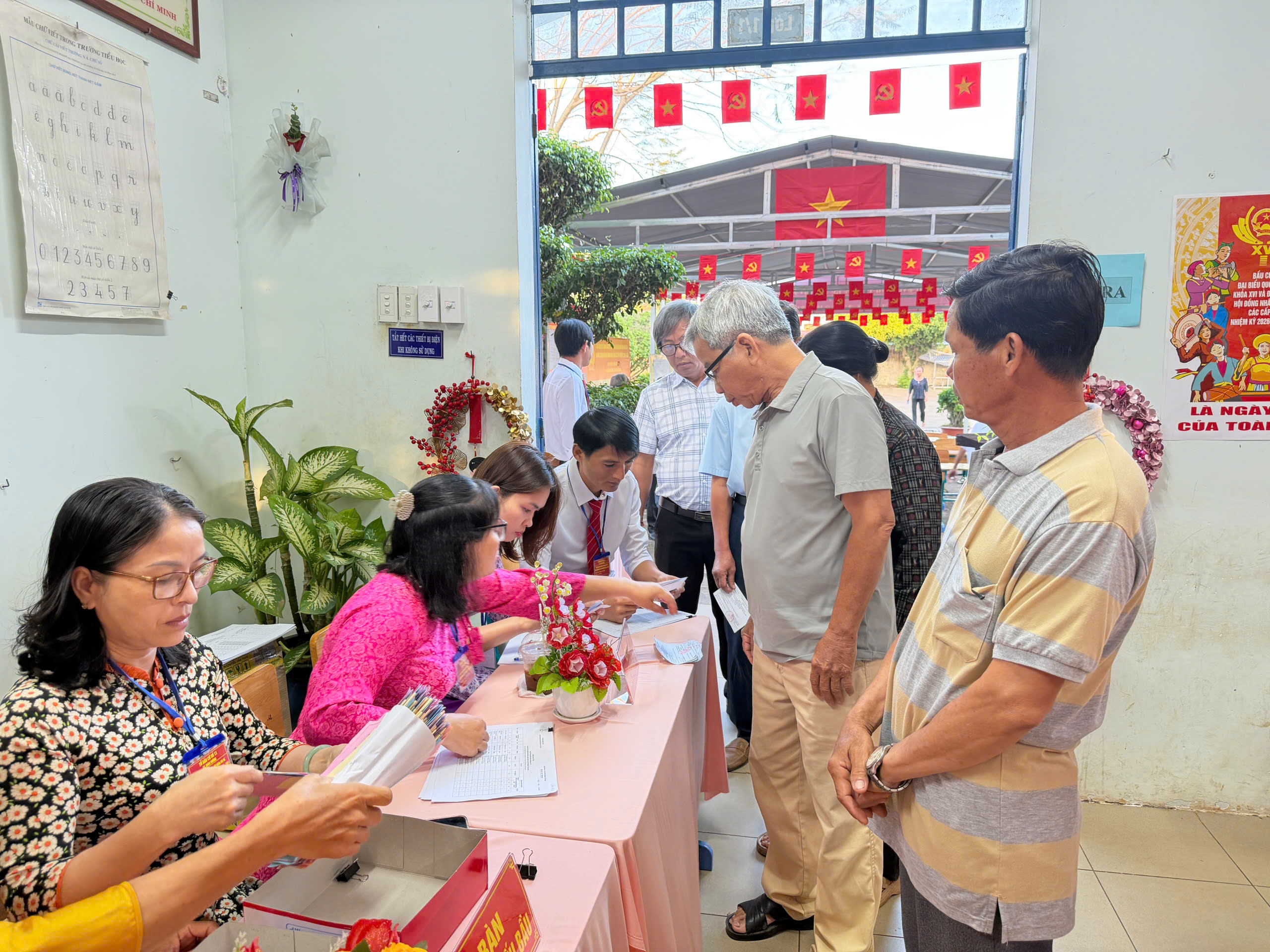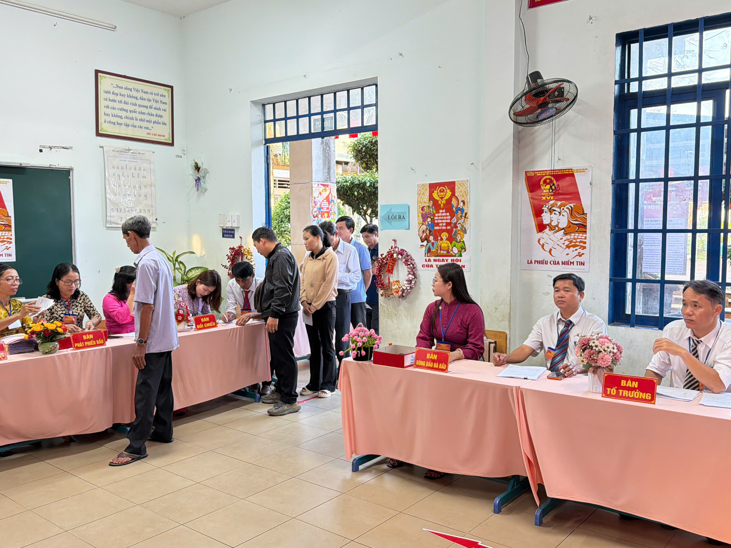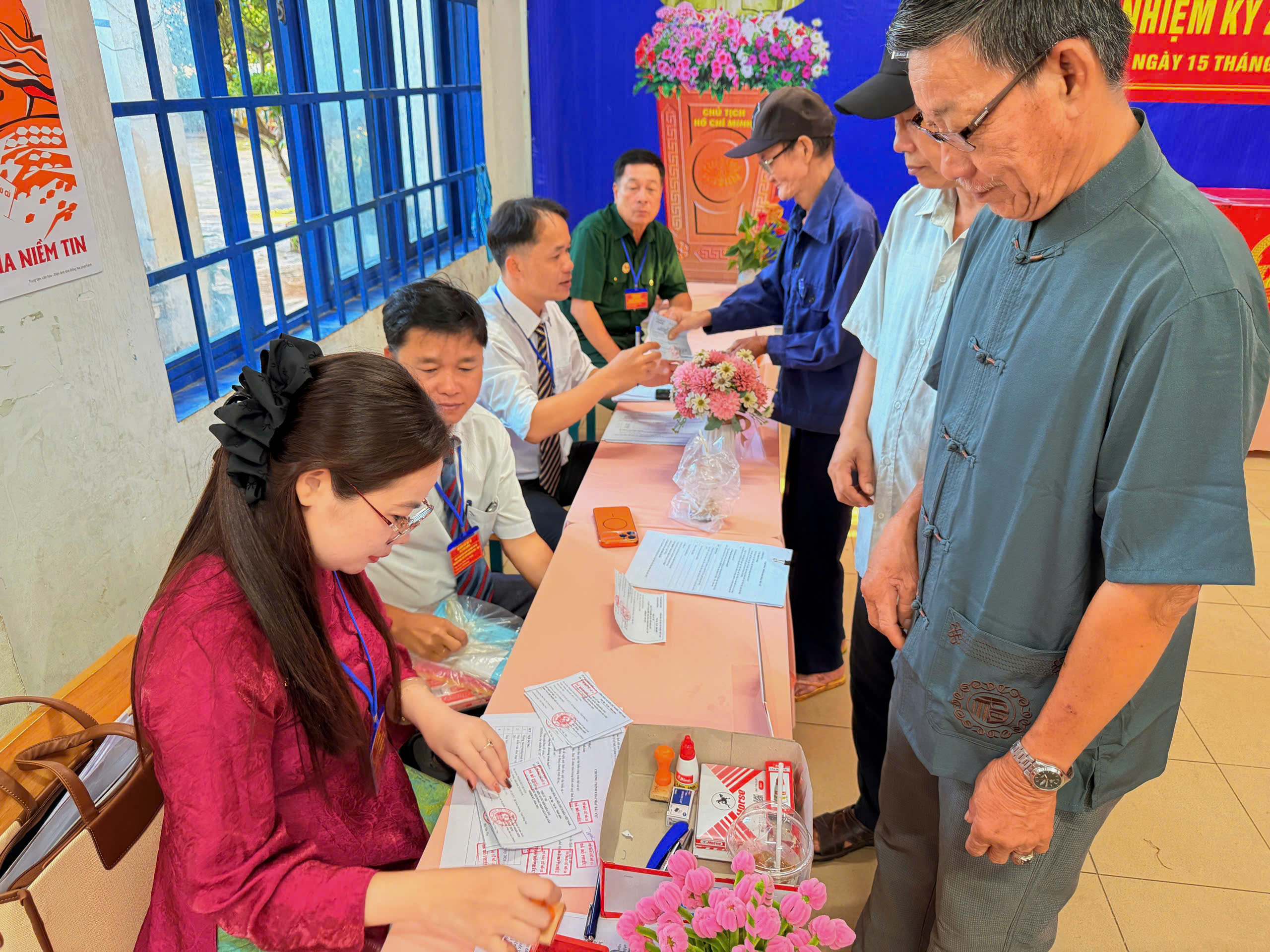 Sau phần khai mạc, các Tổ bầu cử đã phổ biến quy trình bỏ phiếu, hướng dẫn cử tri kiểm tra danh sách, nhận phiếu và thực hiện quyền, nghĩa vụ công dân theo đúng quy định.