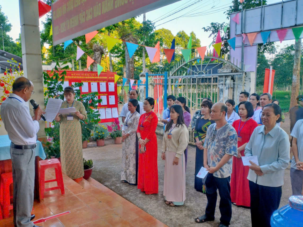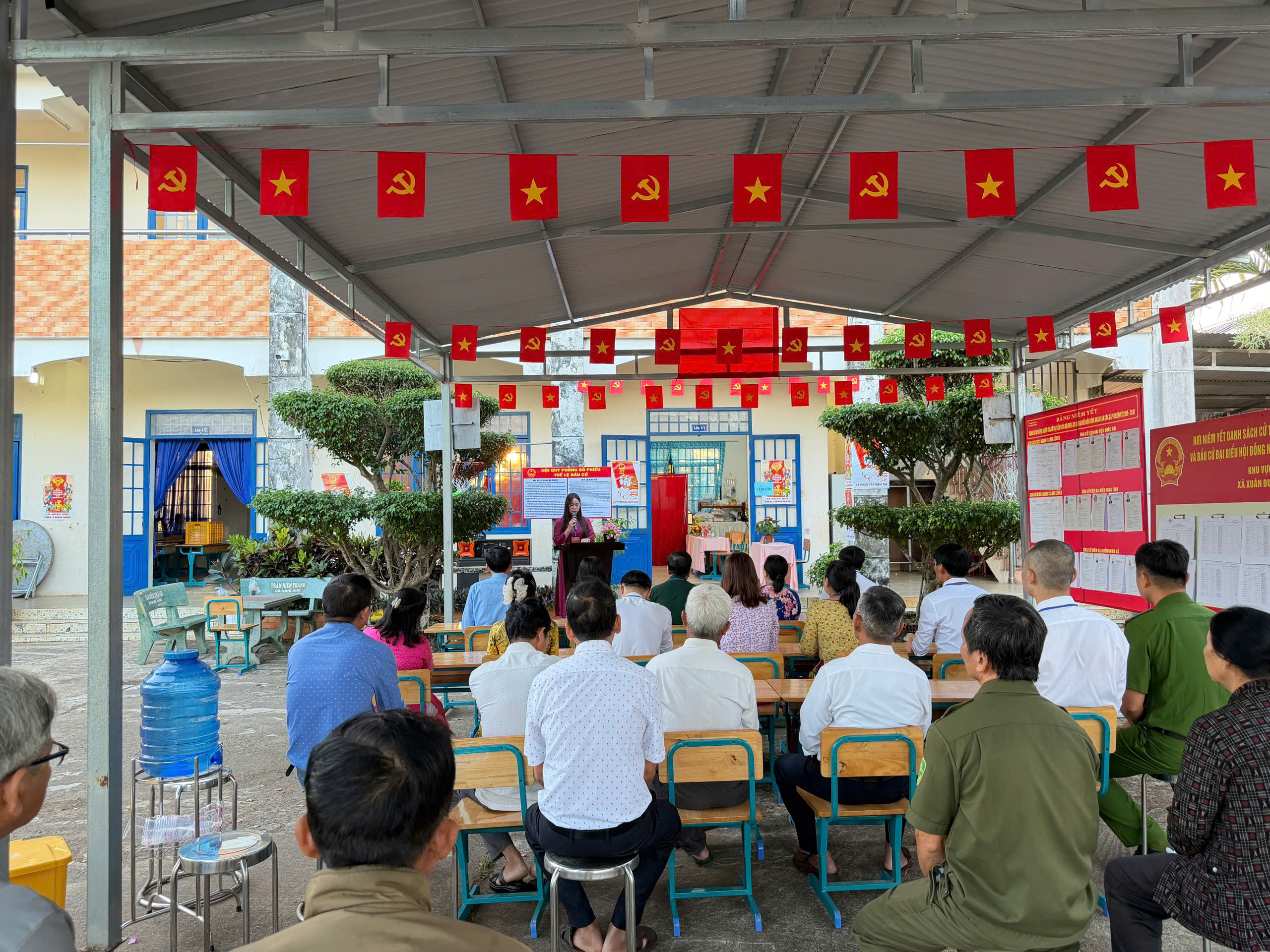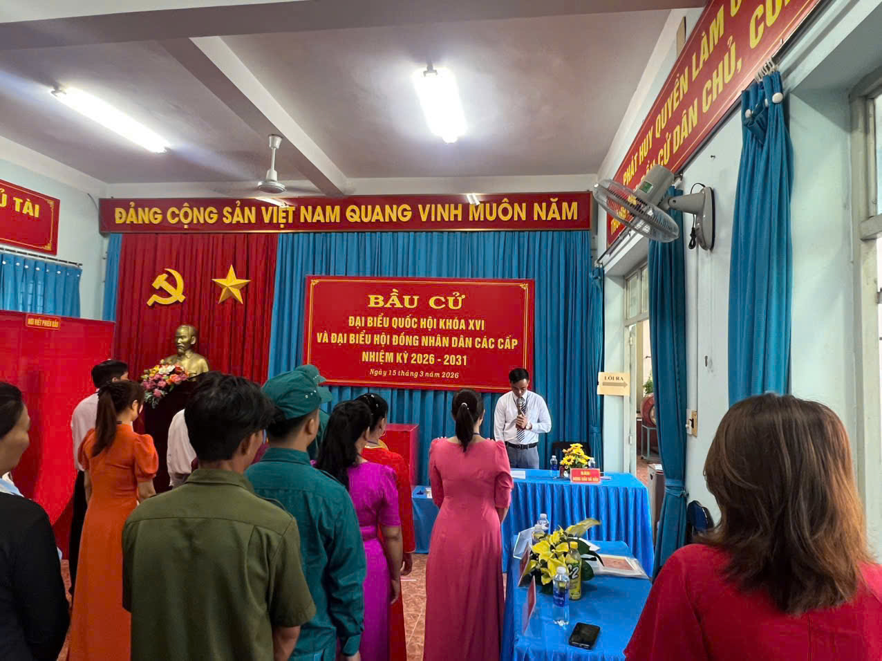 Sau phần khai mạc, các Tổ bầu cử đã phổ biến quy trình bỏ phiếu, hướng dẫn cử tri kiểm tra danh sách, nhận phiếu và thực hiện quyền, nghĩa vụ công dân theo đúng quy định.