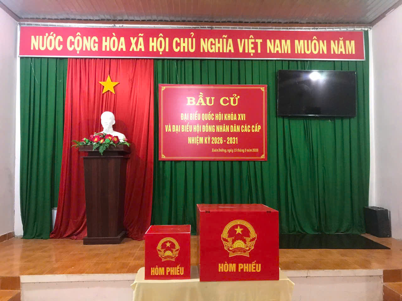 Nhằm chuẩn bị cho cuộc bầu cử đại biểu Quốc hội khóa XVI và đại biểu HĐND các cấp nhiệm kỳ 2026 – 2031, các Tổ bầu cử trên địa bàn xã Xuân Đường đã hoàn tất công tác trang trí tại các khu vực bỏ phiếu.