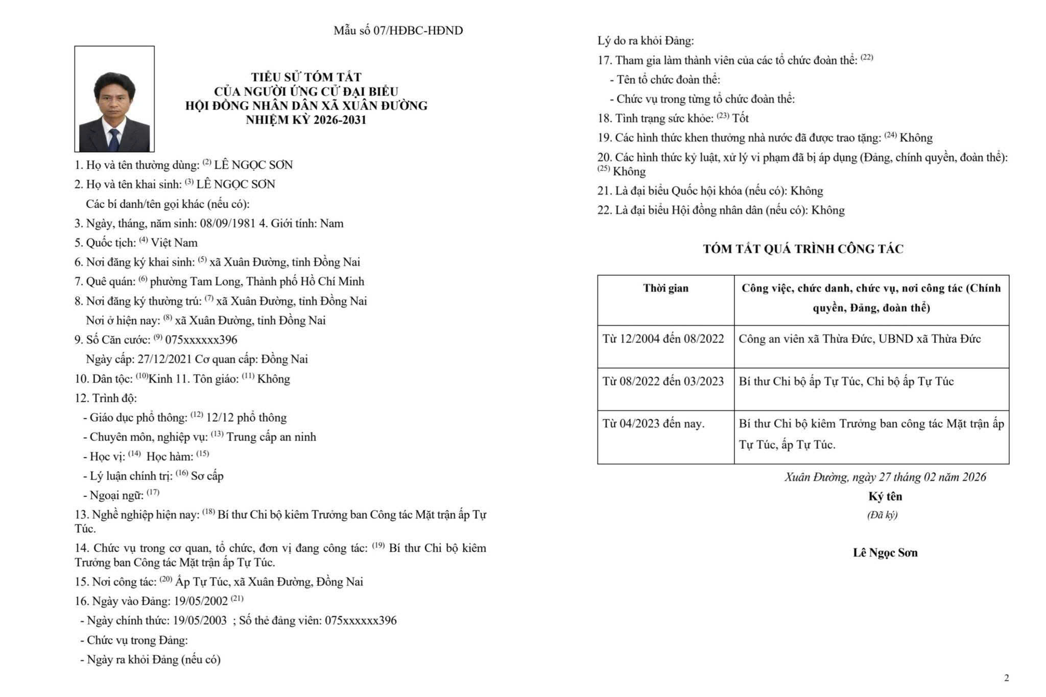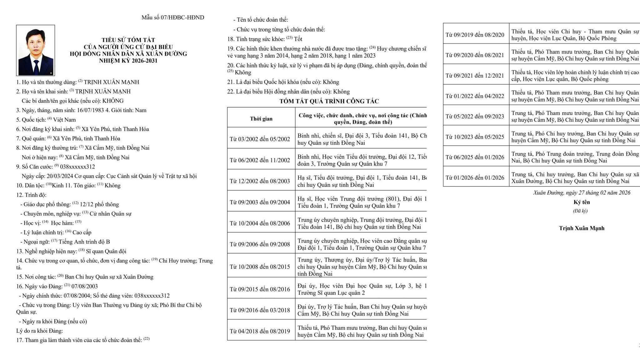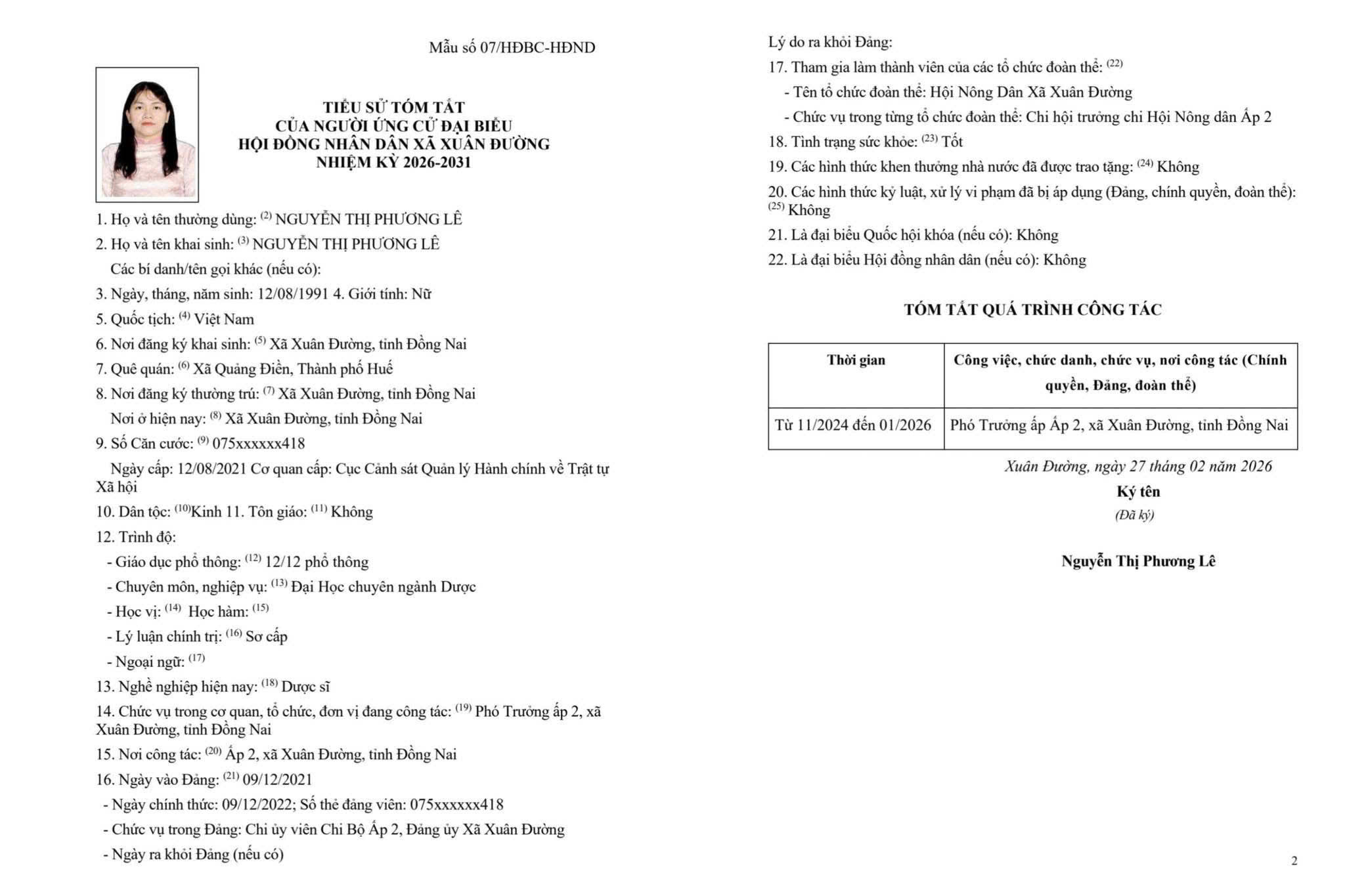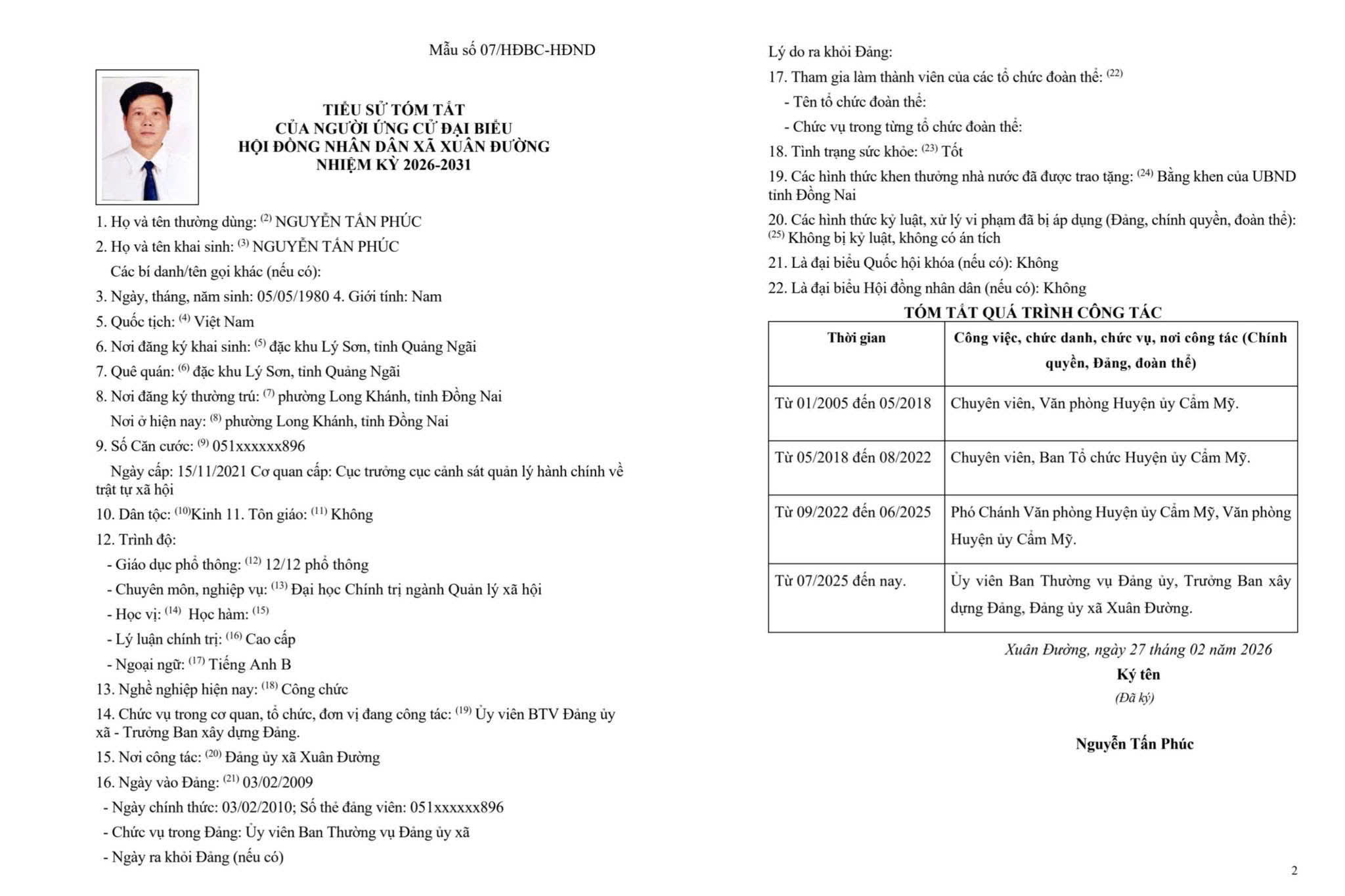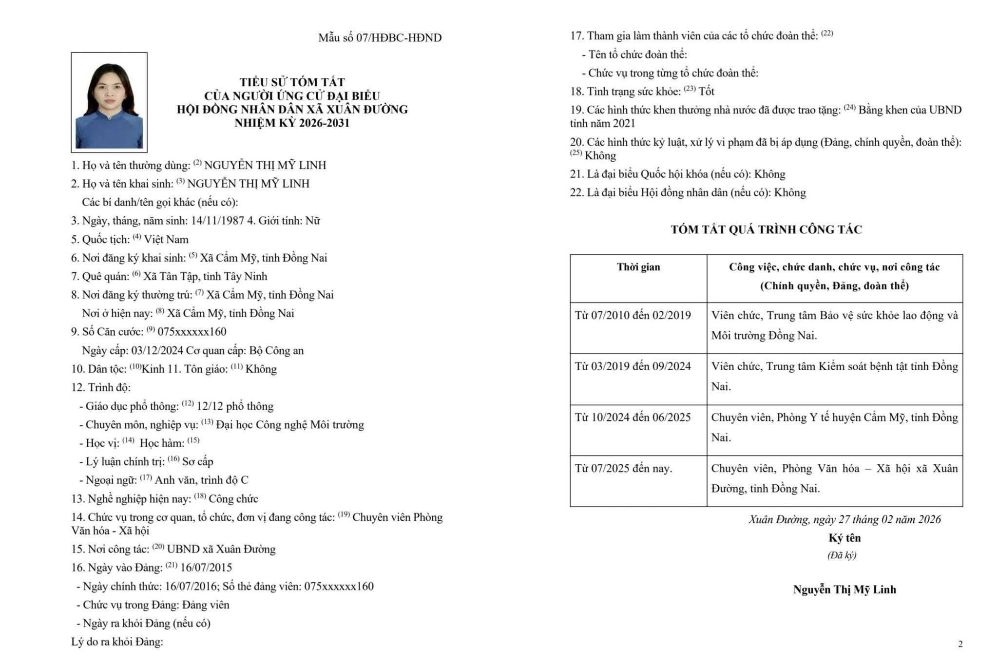 Trân trọng giới thiệu tiểu sử tóm tắt những người ứng cử đại biểu Hội đồng nhân dân xã Xuân Đường, nhiệm kỳ 2026 – 2031 tại Đơn vị bầu cử số 4.