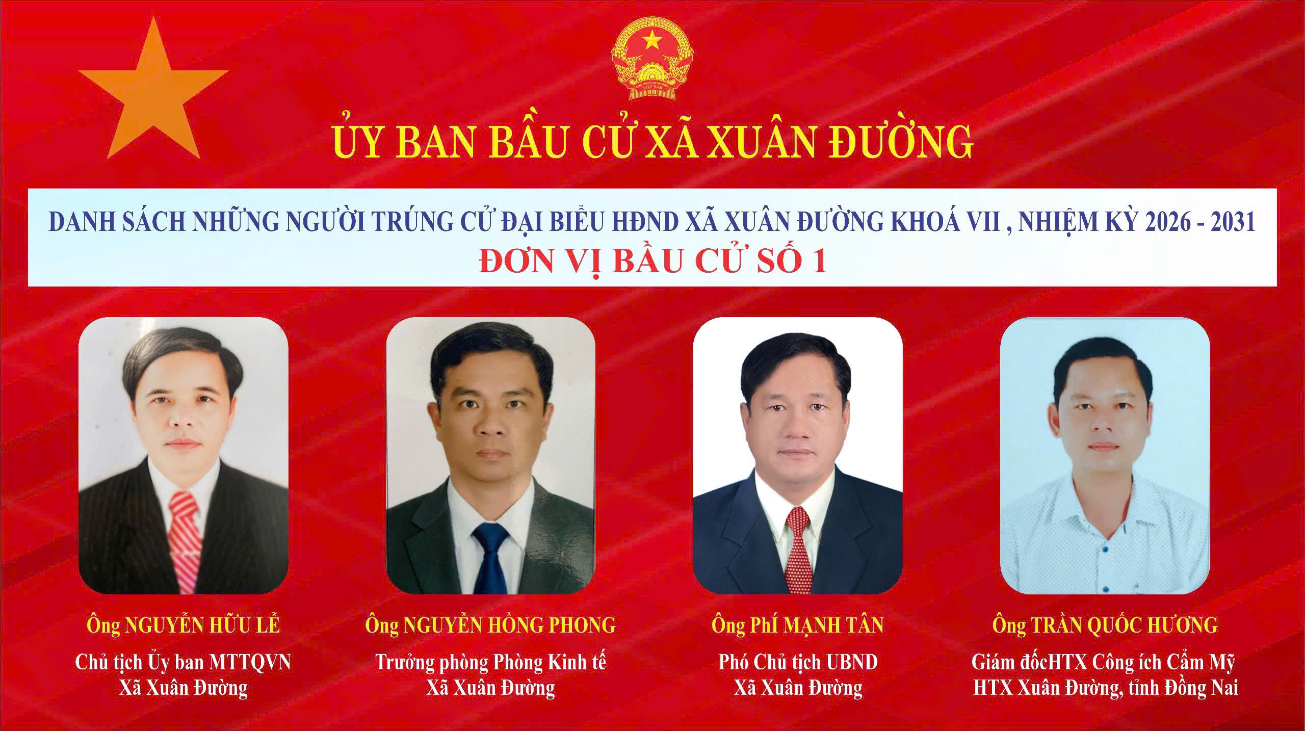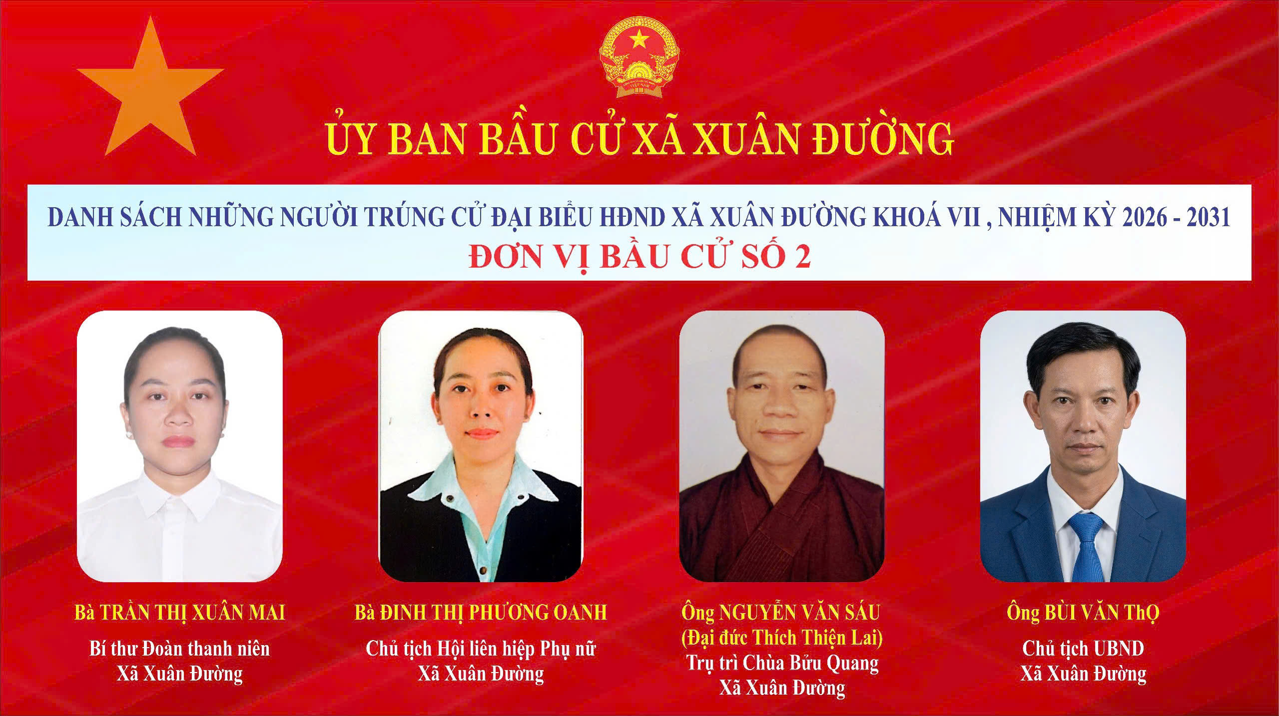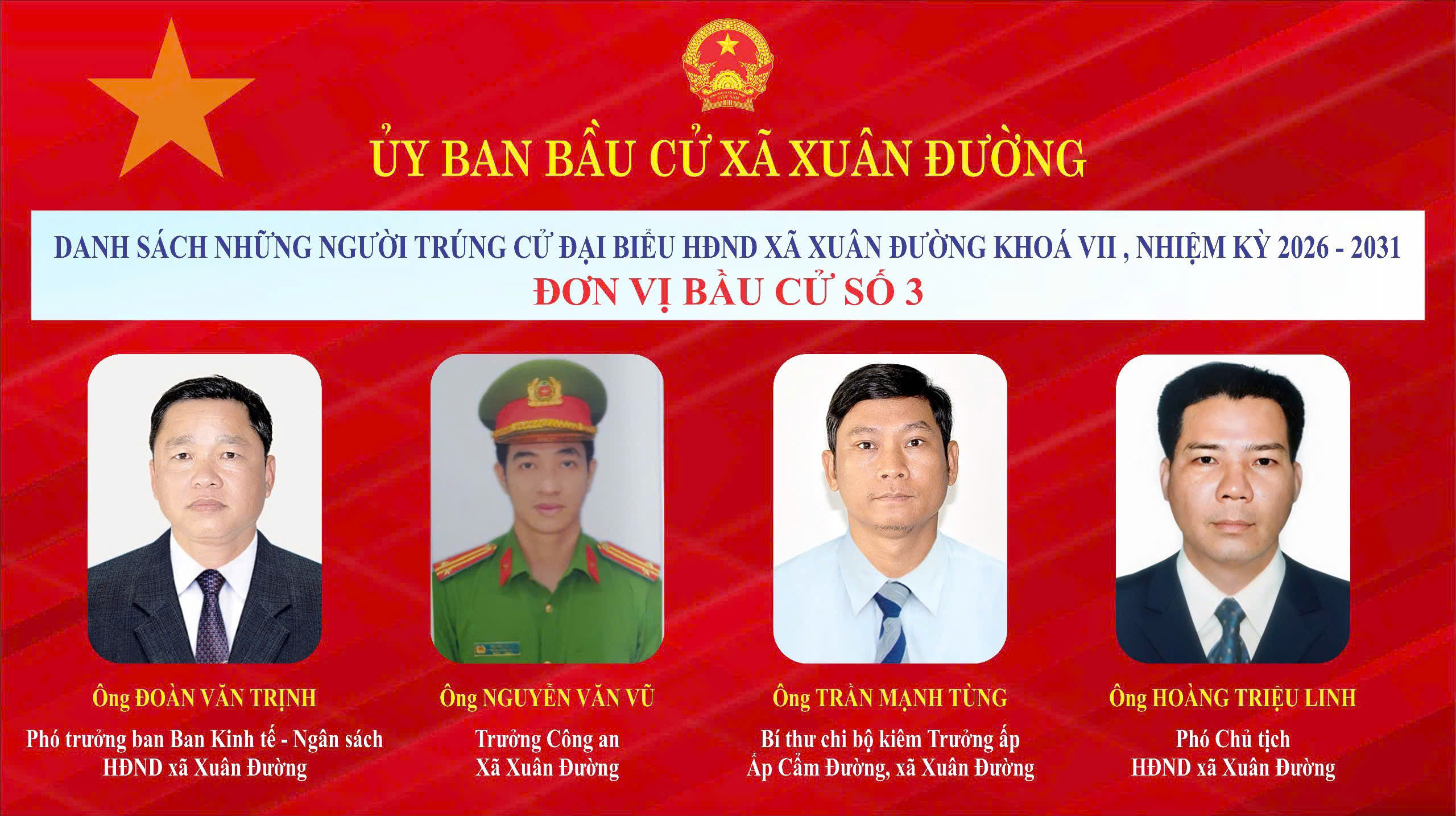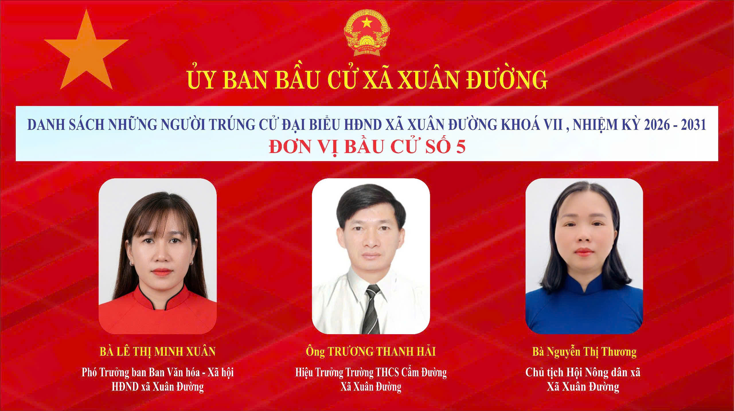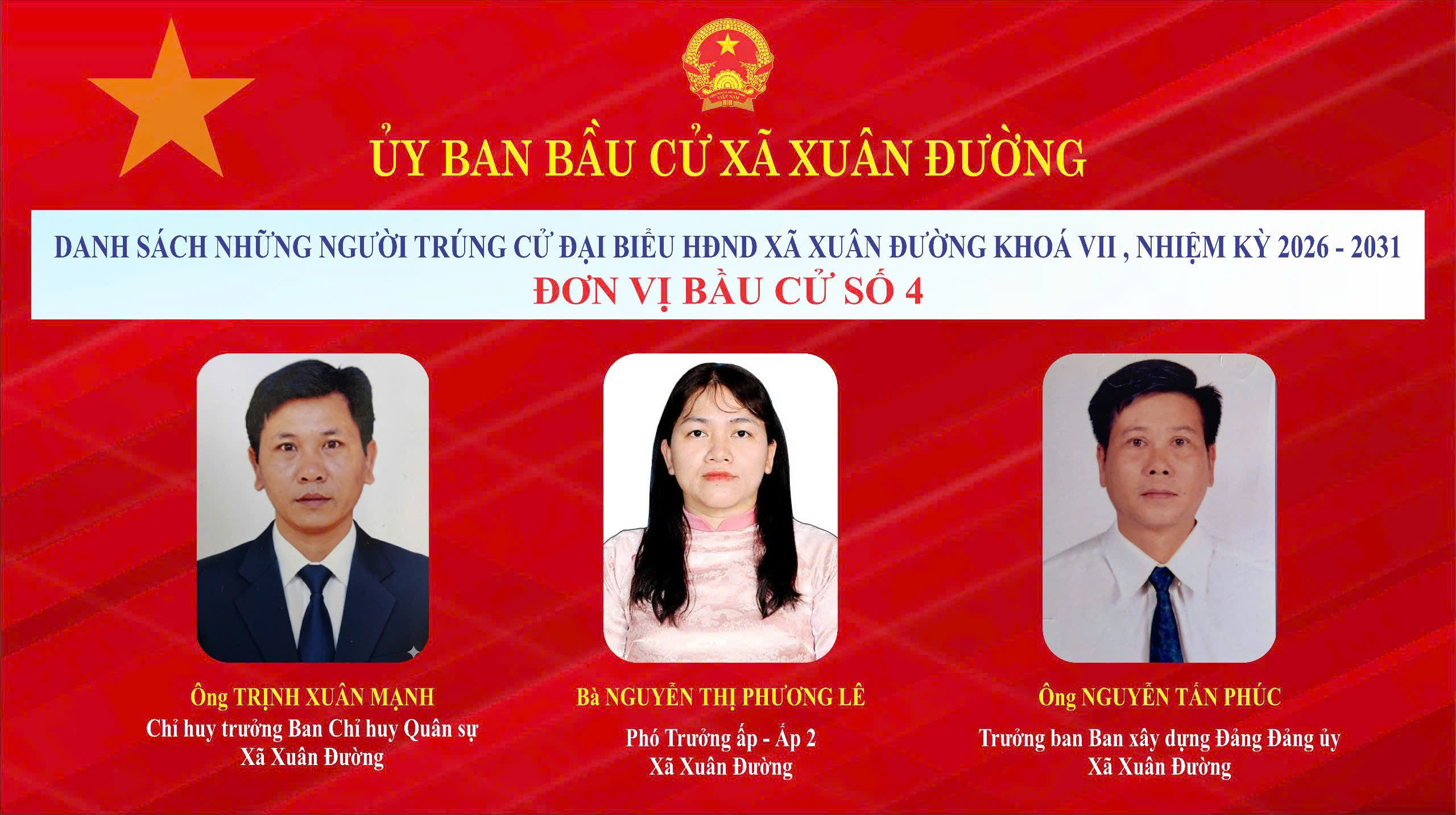 Chúc mừng 21 đại biểu đã trúng cử. Tin tưởng rằng, các đại biểu trúng cử sẽ phát huy tinh thần trách nhiệm, bản lĩnh, trí tuệ, gắn bó mật thiết với Nhân dân, góp phần xây dựng xã Xuân Đường ngày càng phát triển toàn diện, bền vững.