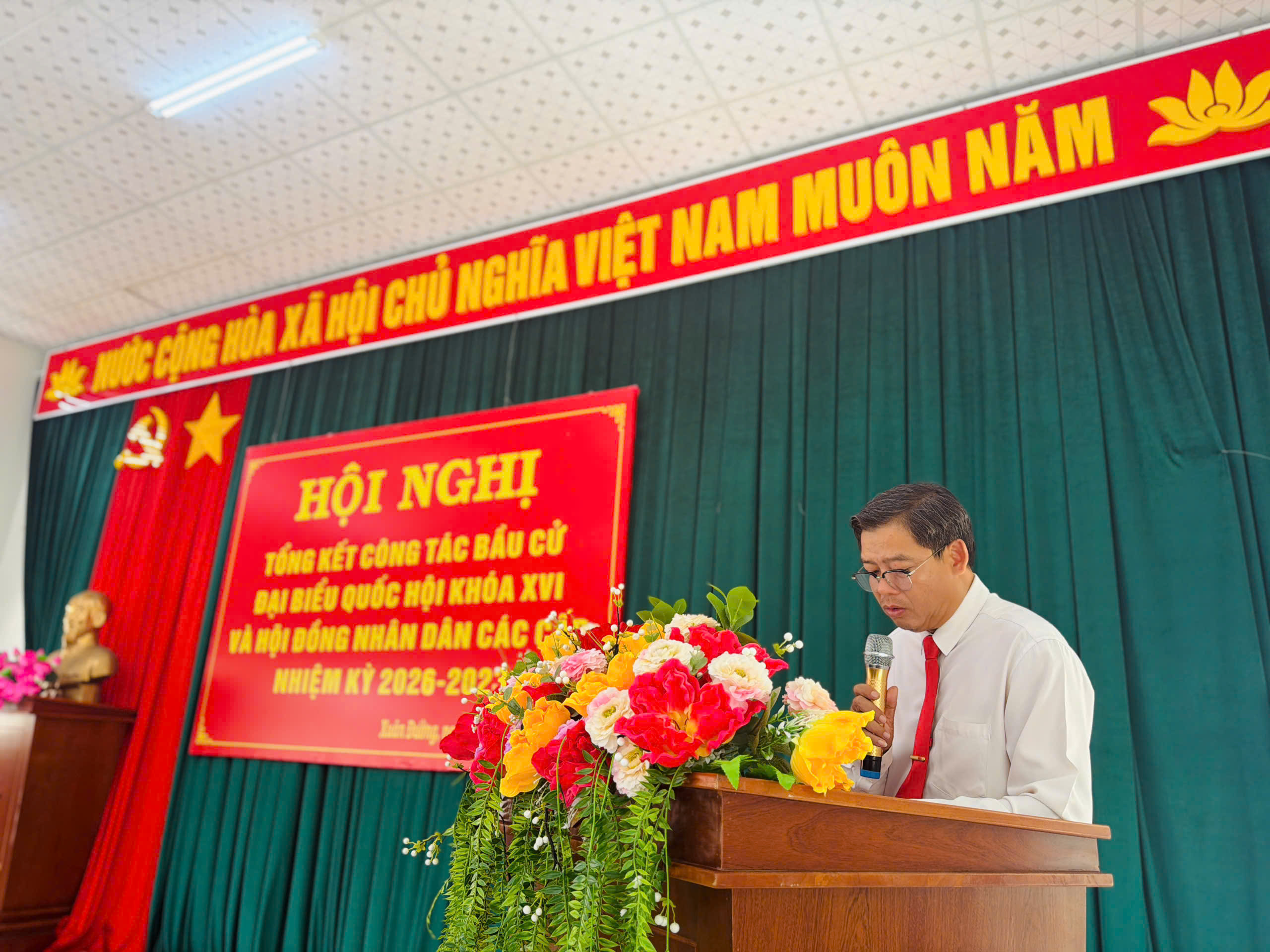 Phát biểu tại hội nghị, đồng chí Lê Hồng Cường - Bí Thư Đảng ủy, Chủ tịch HĐND xã ghi nhận và biểu dương sự nỗ lực, tinh thần trách nhiệm của các cấp, các ngành, các tổ chức và toàn thể Nhân dân trong công tác tổ chức bầu cử; đồng thời rút ra những bài học kinh nghiệm quan trọng để vận dụng trong thực hiện các nhiệm vụ chính trị tại địa phương trong thời gian tới.