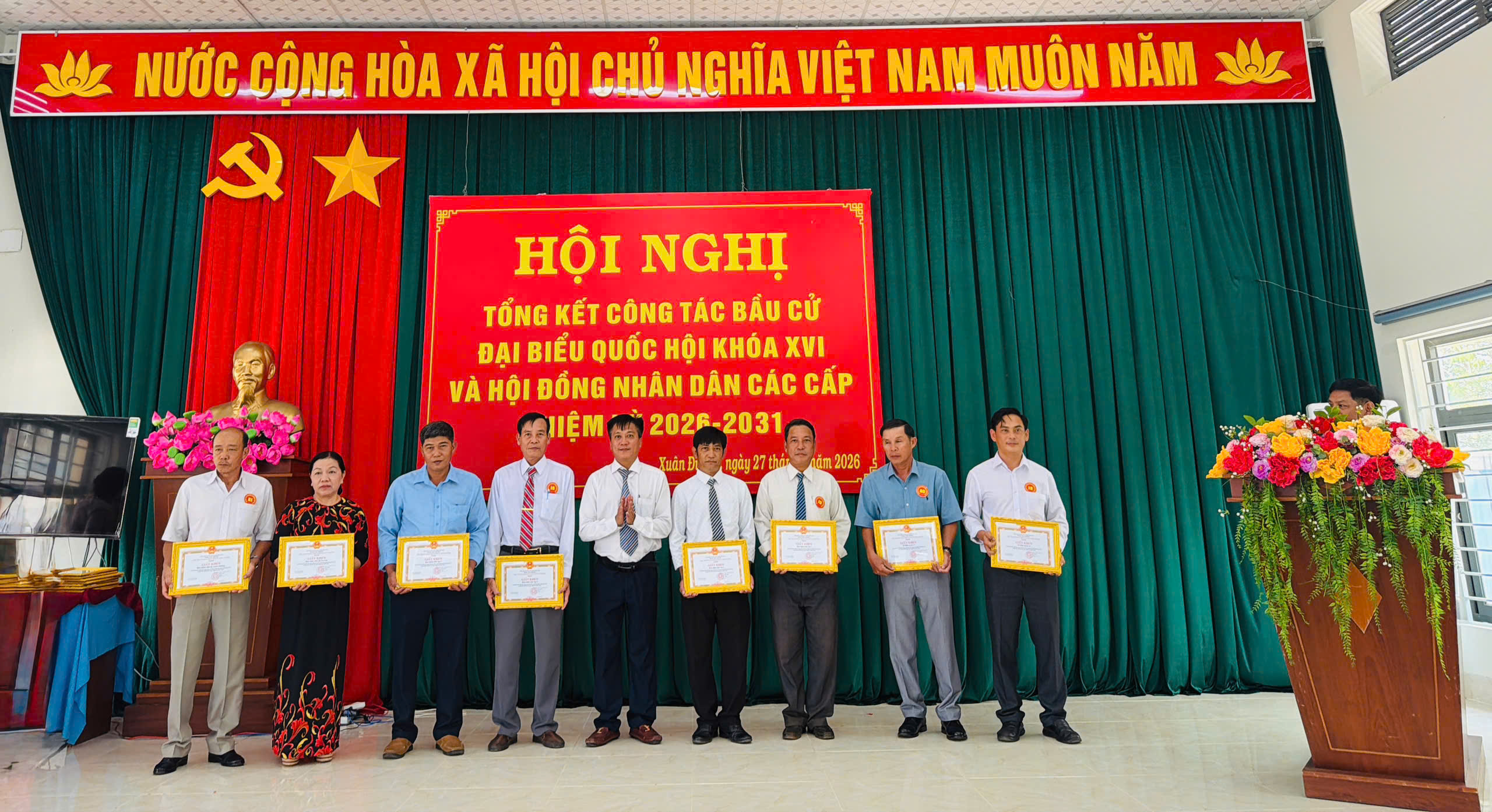 Nhân dịp này, Uỷ ban Bầu cử xã Xuân Đường đã trao Giấy khen cho 22 tập thể, 95 cá nhân có thành tích xuất sắc trong công tác bầu cử, góp phần vào thành công chung của cuộc bầu cử đại biểu Hội đồng nhân dân các cấp nhiệm kỳ 2026 – 2031.