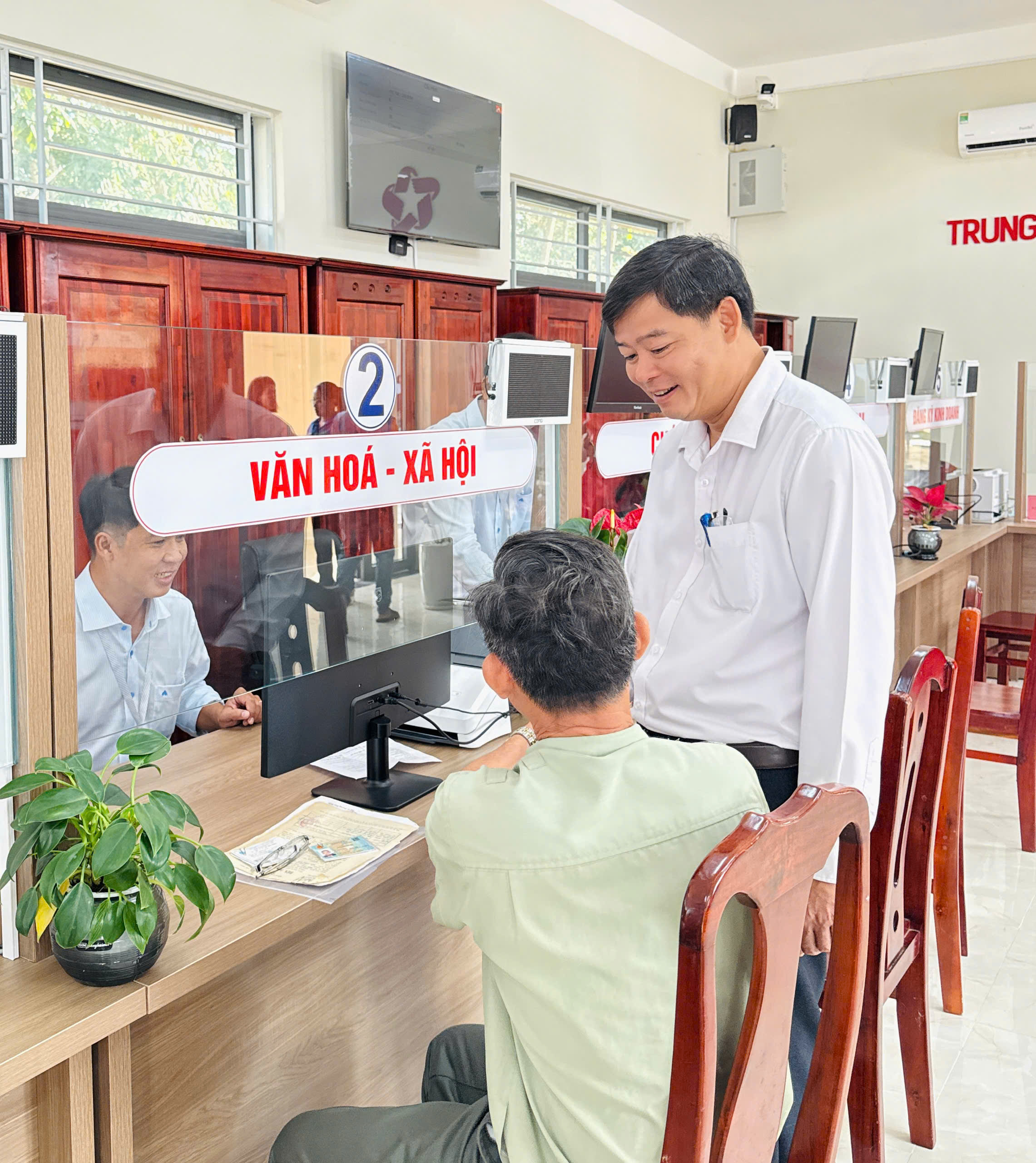 + Quầy số 2 _ Lĩnh vực Văn hóa - Xã hội: Bảo trợ xã hội, người có công, Bảo hiểm y tế trẻ em, giáo dục, thể thao, y tế...