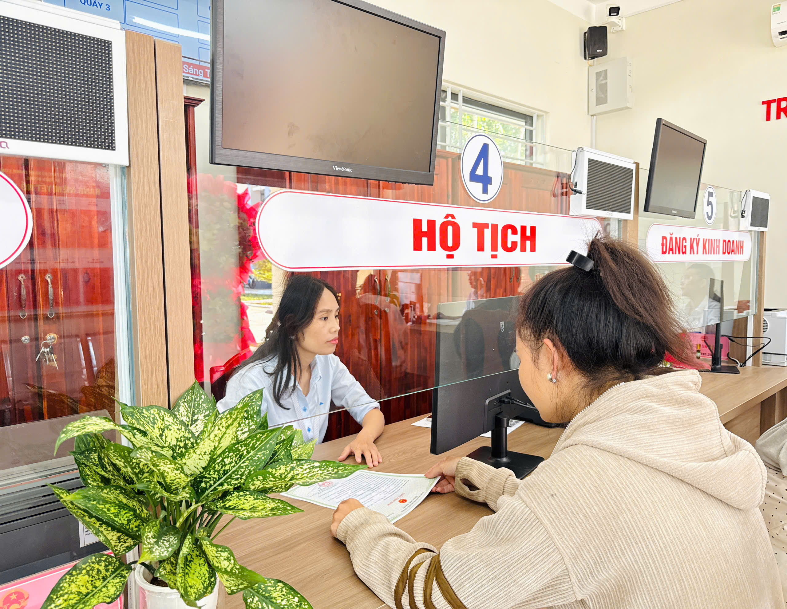 + Quầy số 4 _ Lĩnh vực Hộ tịch: Đăng ký khai sinh, khai tử, kết hôn…