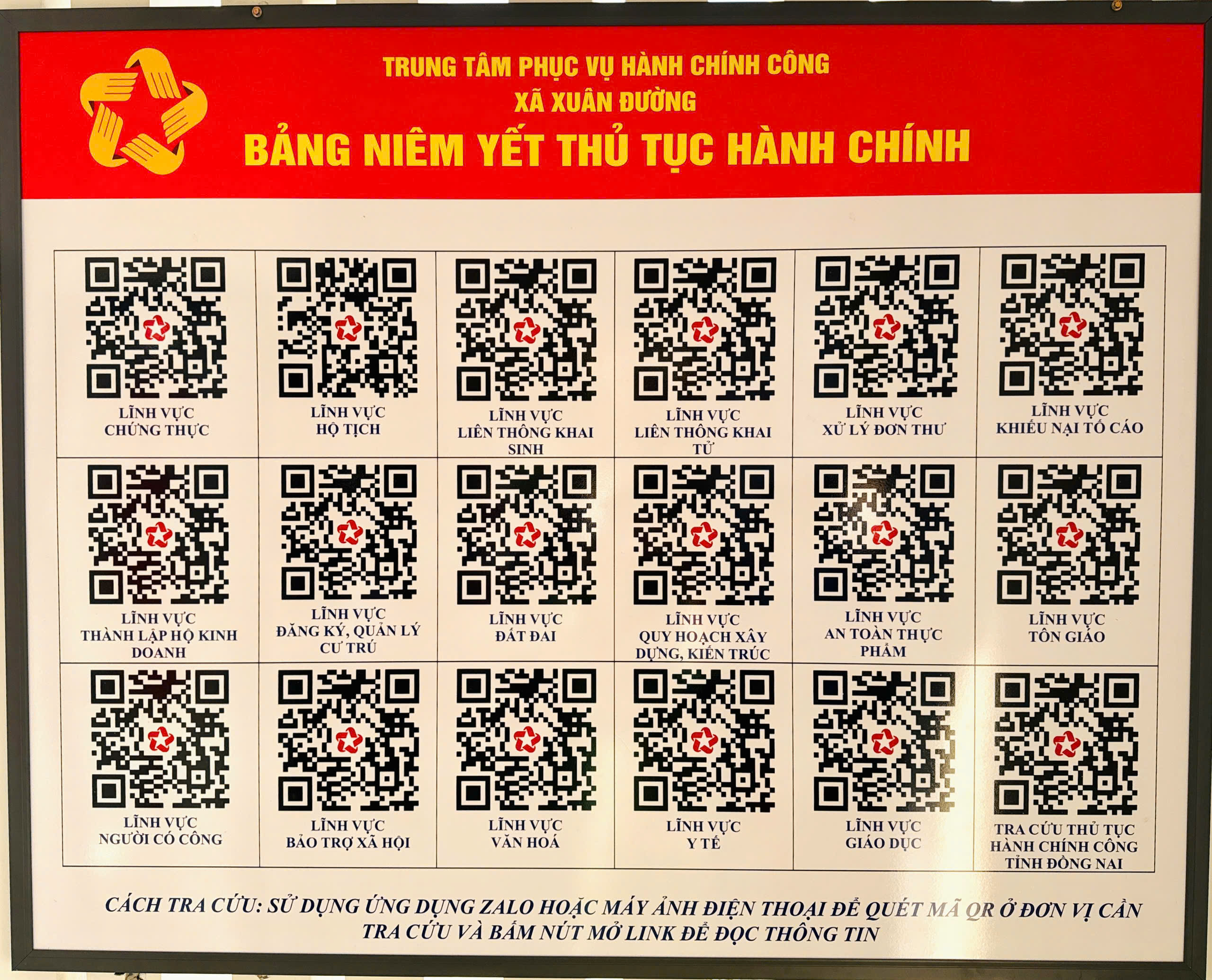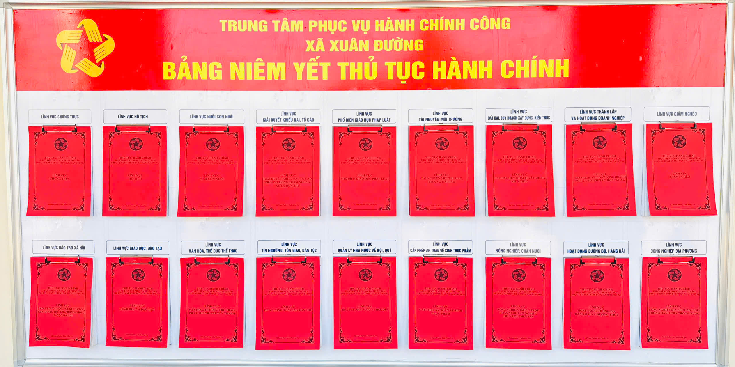 Trung tâm phục vụ Hành chính công xã Xuân Đường bố trí 07 quầy tiếp nhận hồ sơ thuộc các lĩnh vực như sau: