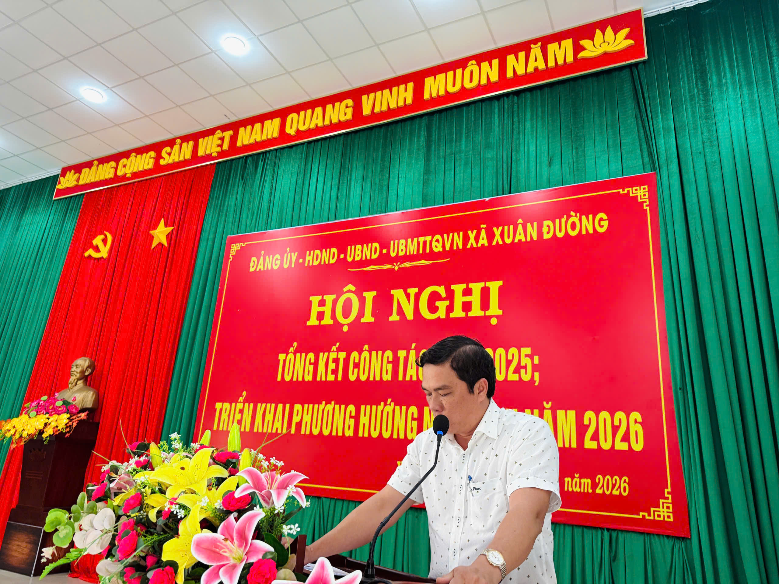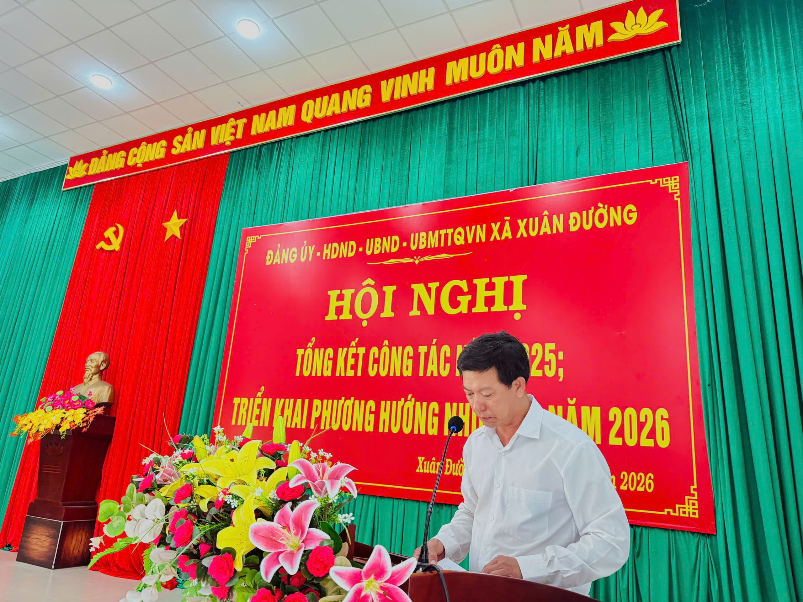 Phát biểu tại hội nghị, đồng chí Lê Hồng Cường – Bí thư Đảng ủy xã, Chủ tịch Hội đồng nhân dân xã ghi nhận và biểu dương những nỗ lực, tinh thần trách nhiệm của tập thể cấp ủy, cán bộ, đảng viên và Nhân dân xã Xuân Đường trong năm 2025; đồng thời yêu cầu tiếp tục phát huy tinh thần đoàn kết, kỷ cương, gương mẫu, quyết tâm thực hiện thắng lợi các nhiệm vụ chính trị trong giai đoạn tiếp theo.